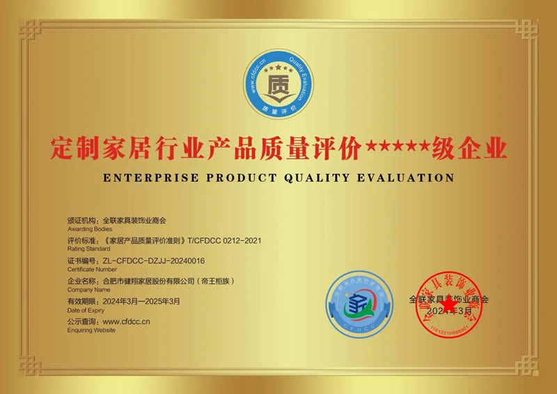 为持续改善大家的智慧家居生活品质,提供高品质的全品类产品,满足消费者对品质不断升级的需求,帝王柜族不断提高自身的质量要求,引进全球一流工艺品质,对整个生产销售全流程进行的严格质量风险管理,务求以更高质量的标准,为消费者提供优质的产品和服务,用实力打造好柜超大牌。