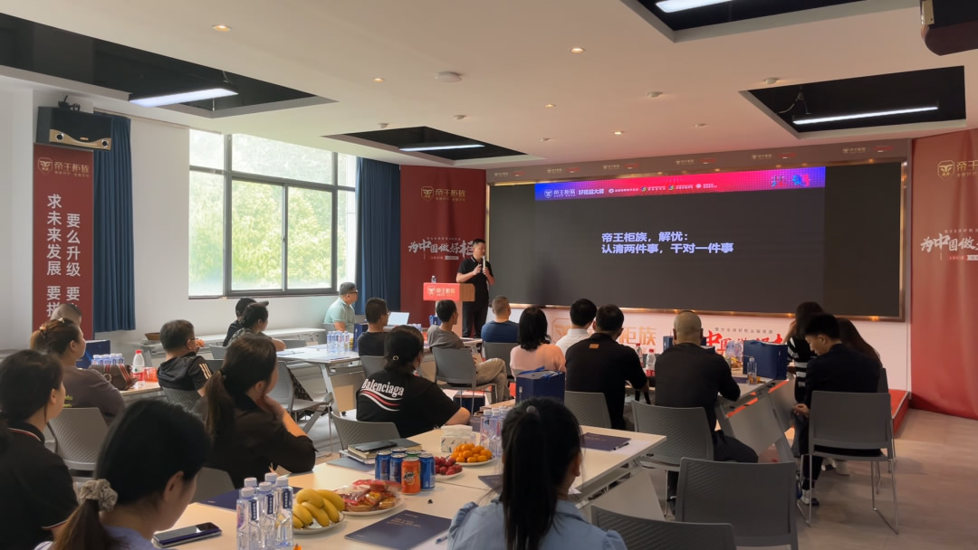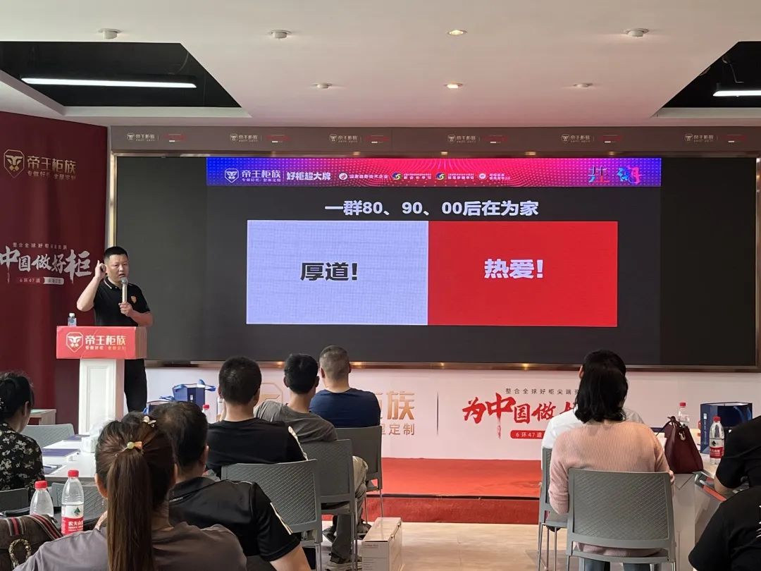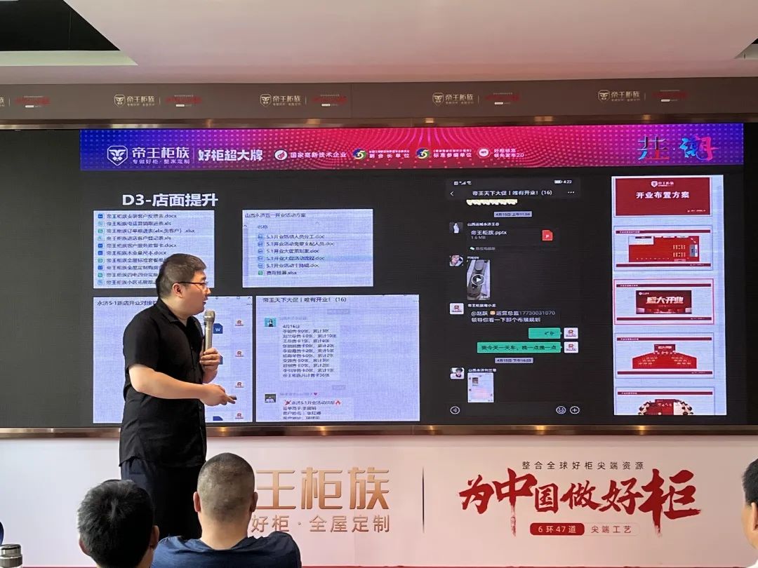 最后帝王柜族招商部史总为大家分享了帝王柜族的几大销售卖点,帝王柜族未来的战略发展规划,并公布本次开年招商活动的政策,在线解答了经销商朋友们经营过程中的疑难和困惑,为经销商注入强大的信心及动力。