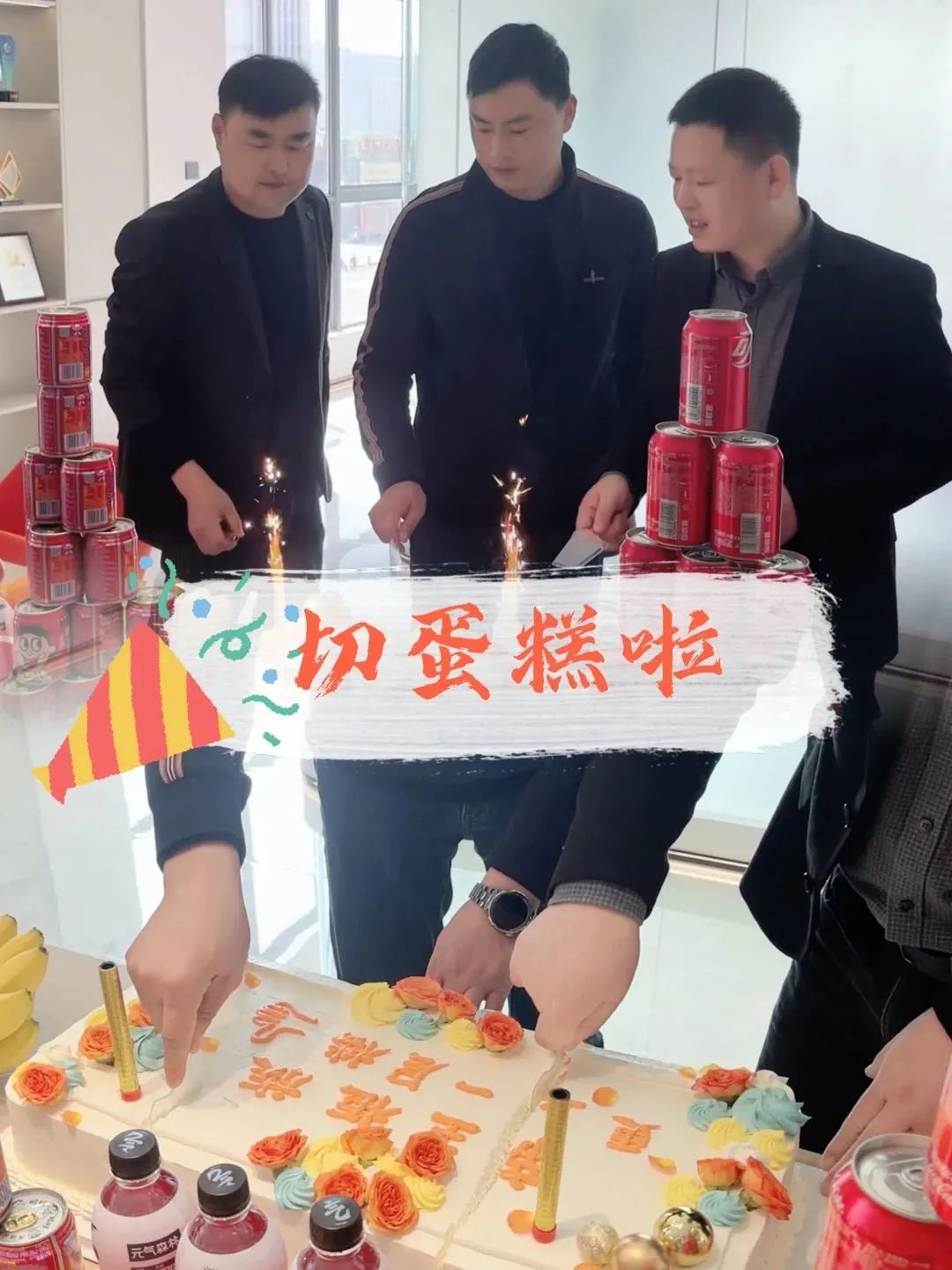 随后,刘总和裴总在全体家人的掌声中,切下了象征着帝王柜族美好未来的蛋糕!