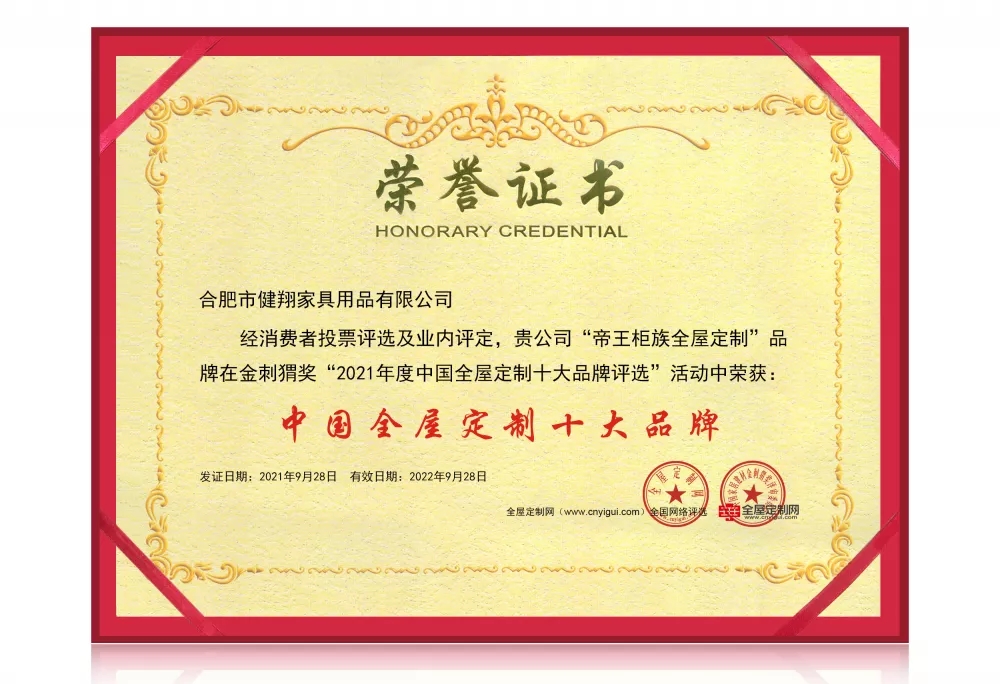 金秋结硕果|帝王柜族连续五年斩获“中国全屋定制十大品牌”!