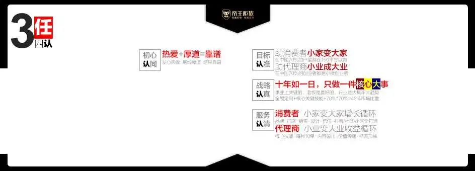 找准定位才能找准目标客群,在市场中脱颖而出。帝王柜族通过研发、招商、培训、运营、企划等全新品牌发展战略,精准定位高质量、高品位的家居市场,提升品牌影响力,促进品牌声量的扩张和品牌形象的提升,助推帝王柜族发展行稳致远!