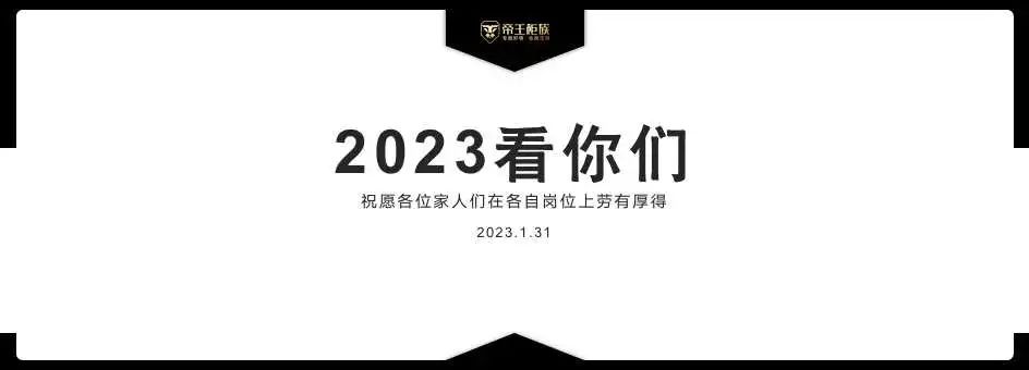 2023年的号角已经吹响,不拘于过往,才能突破自我,帝王柜族必定不忘初心,奋力拼搏!未来,让我们策马扬鞭,携手并进,共同见证帝王柜族扬帆起航,取得更辉煌的成绩!