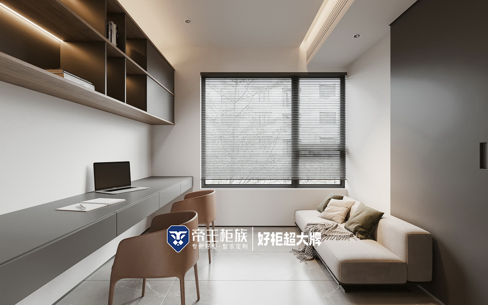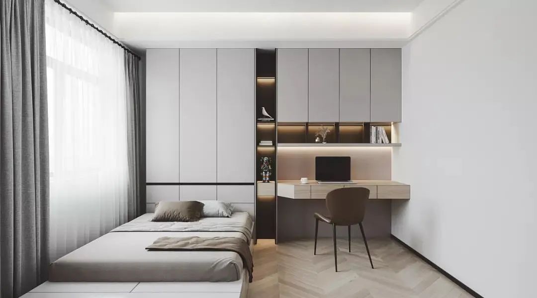比日式更简单的是原木简约风格,用窗前的采光位置定制书桌,营造安静的学习空间。