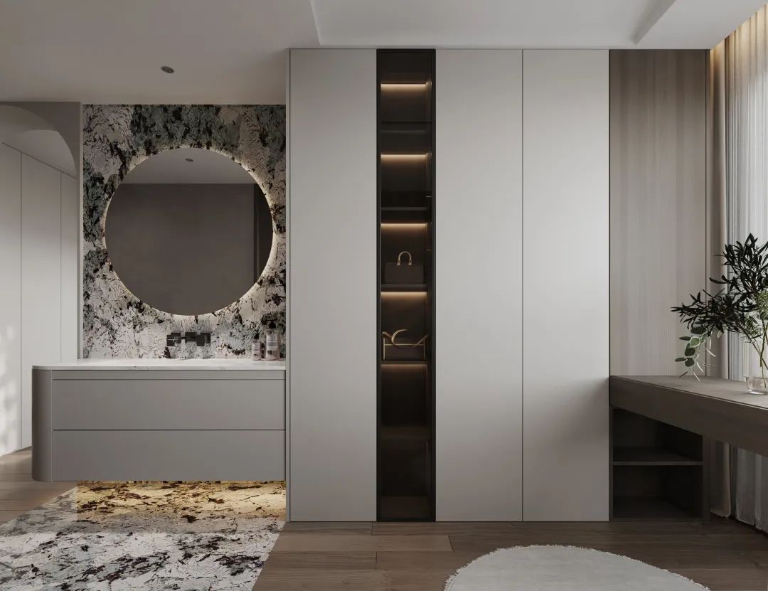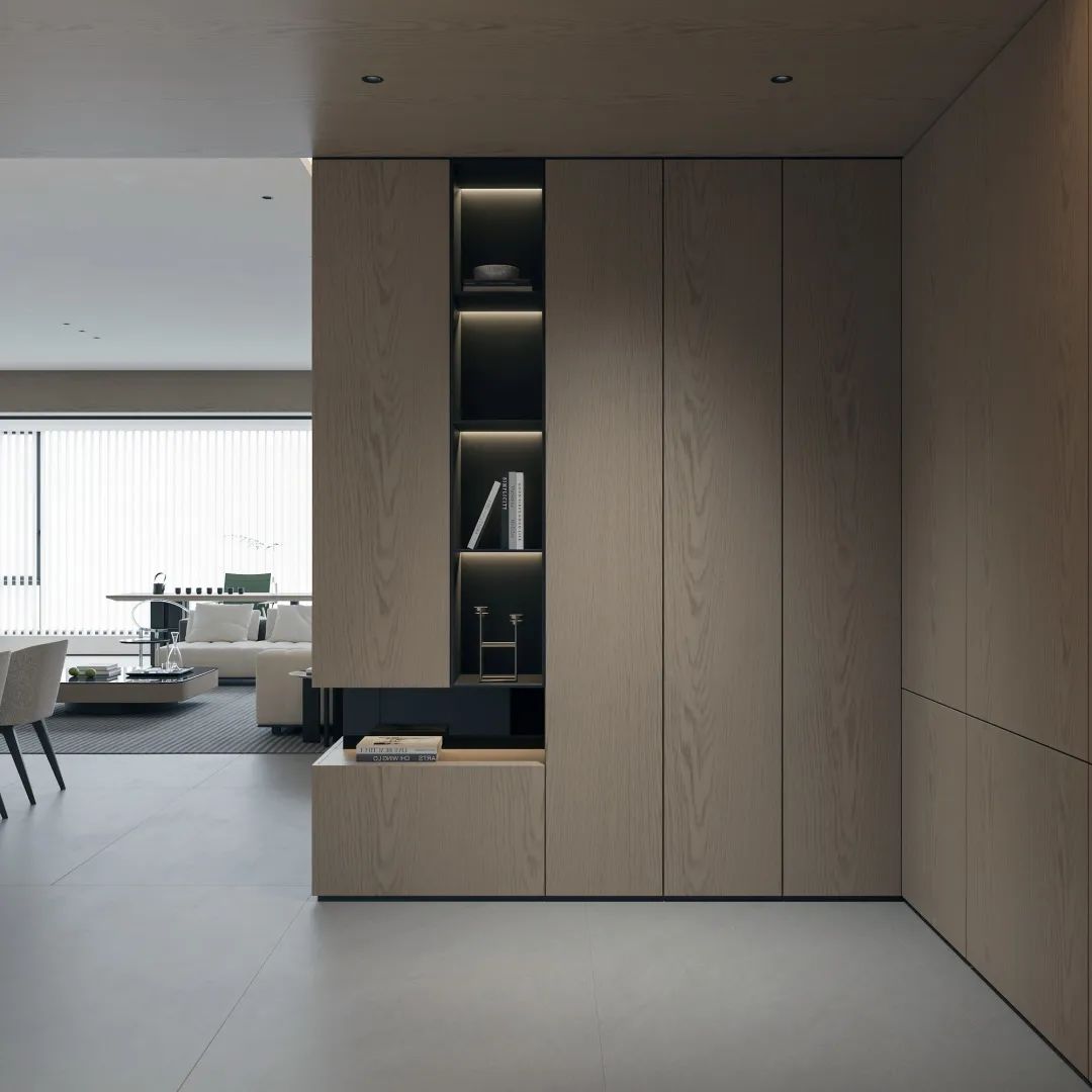 超高门玄关柜作为家的门面,属实是把收纳和颜值给整明白了。整洁、大气,在视觉上近一步扩大了空间。