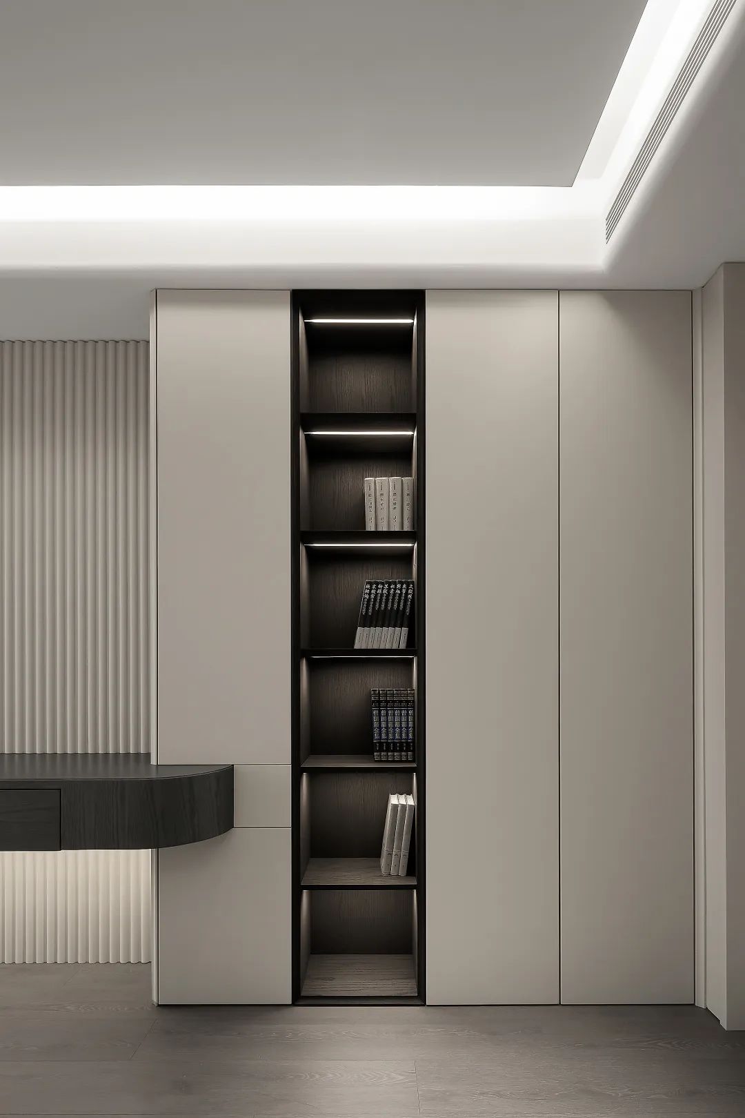 传统柜子定制一般是上下柜组合,柜门无法到达顶部。找东西的时候上下开门,很麻烦。至于超高柜门,由于采用了一门到顶的设计,想拿哪一边的物品就可以打开一次,同时也可以避免灰尘堆积在顶部。当然,最重要的还是超好看的。