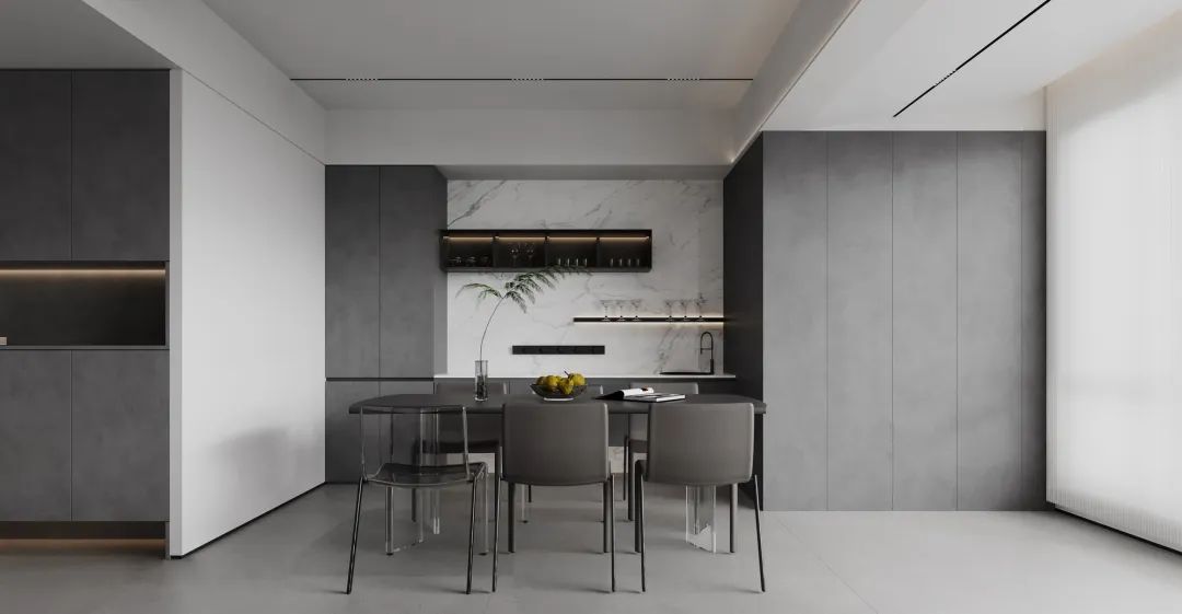 餐边柜本身的开关门频率就很高,做一门到顶的设计,避免上下柜门“打架”的现象,无论是拿取物品都快捷方便了很多。