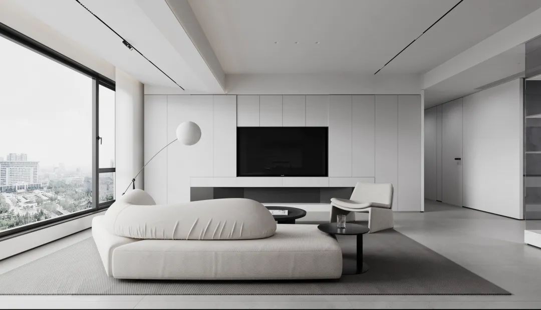 电视柜直接关系着客厅的质感,选择做一门到顶电视柜,容易突出高级感,瞬间提升空间档次,即使是一个简单的电视柜造型,超高门的设计让整体都增色不少。